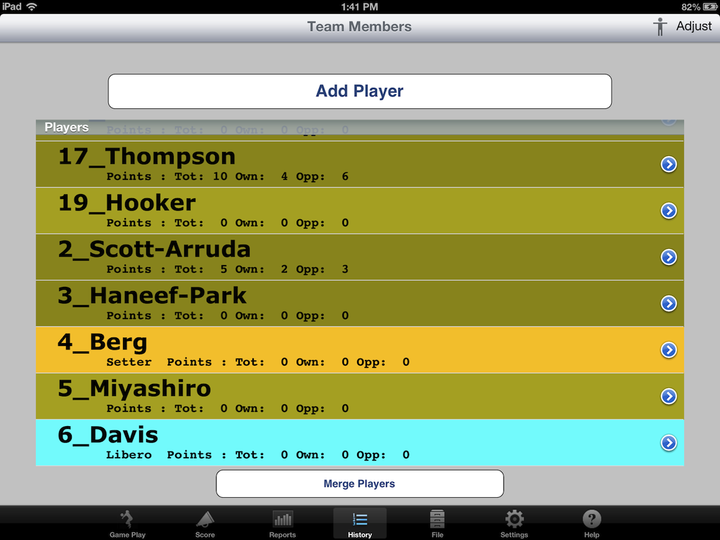 If you have used Volleyball Stat! before and want to use the same (or close to the same) roster of players as in a previously saved match that can be easily done. Go to the